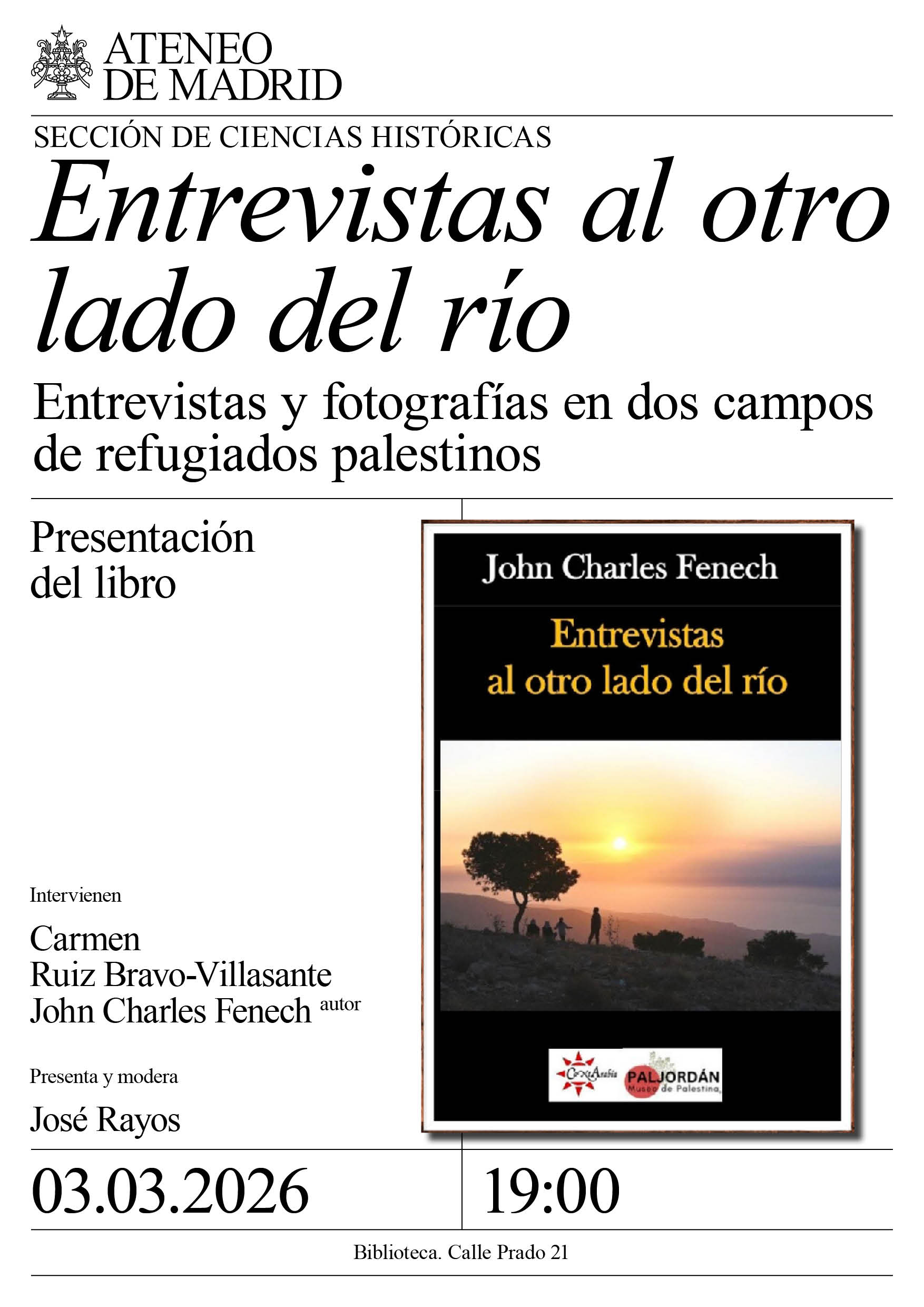 Sección de Ciencias Históricas. Intervienen: Carmen Ruiz Bravo-Villasante, directora de Paljordán, Museo de Palestina y John Charles Fenech, autor. Presenta y modera: José Rayos, historiador del Arte. Biblioteca. 19:00h. Fotografías y entrevistas …