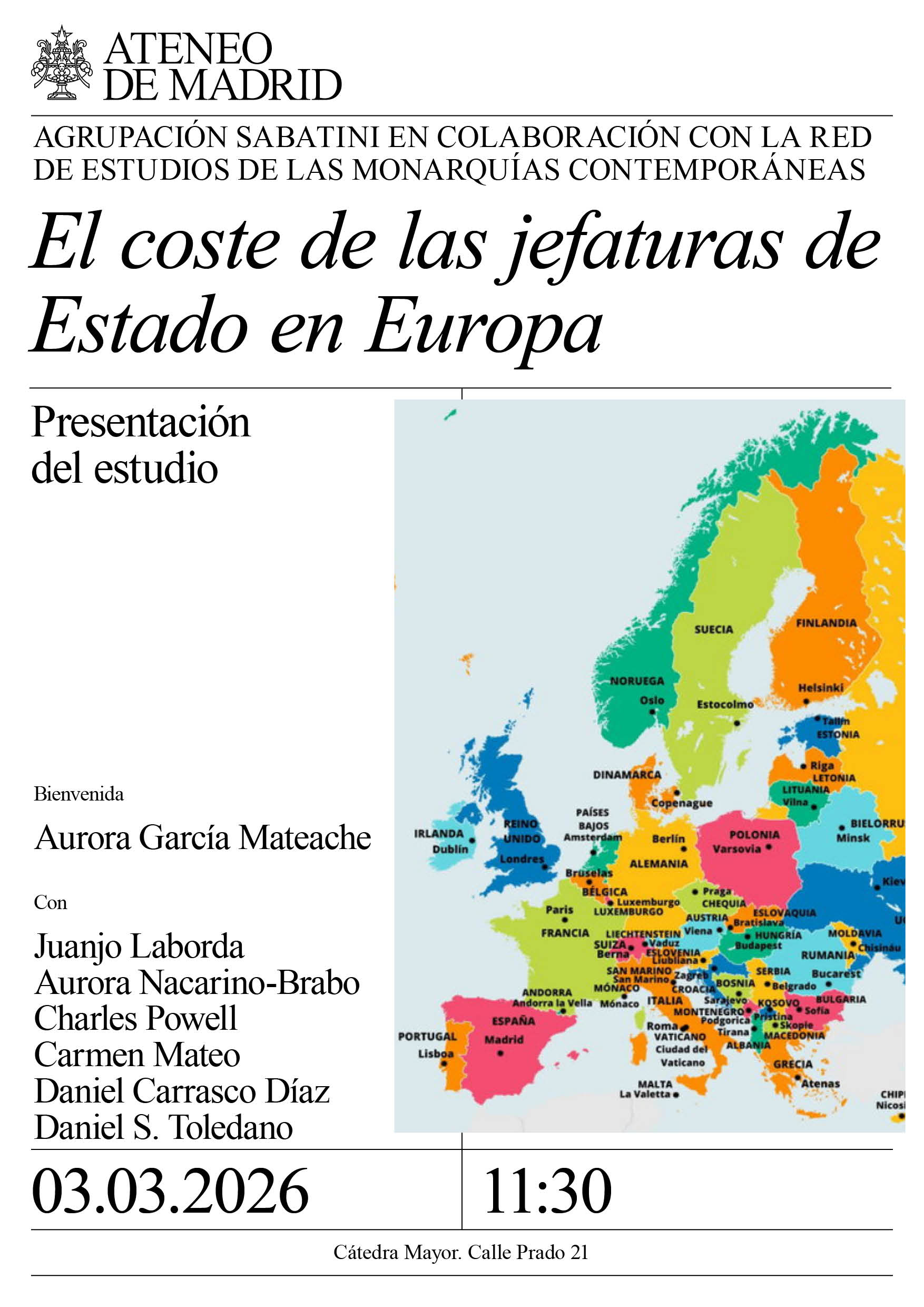 Agrupación Sabatini en colaboración con la Red de estudios de las monarquías contemporáneas. Bienvenida: Aurora García Mateache. Intervienen: Juanjo Laborda, Aurora Nacarino-Brabo , Charles Powell, Carmen Mateo , Daniel Carrasco …