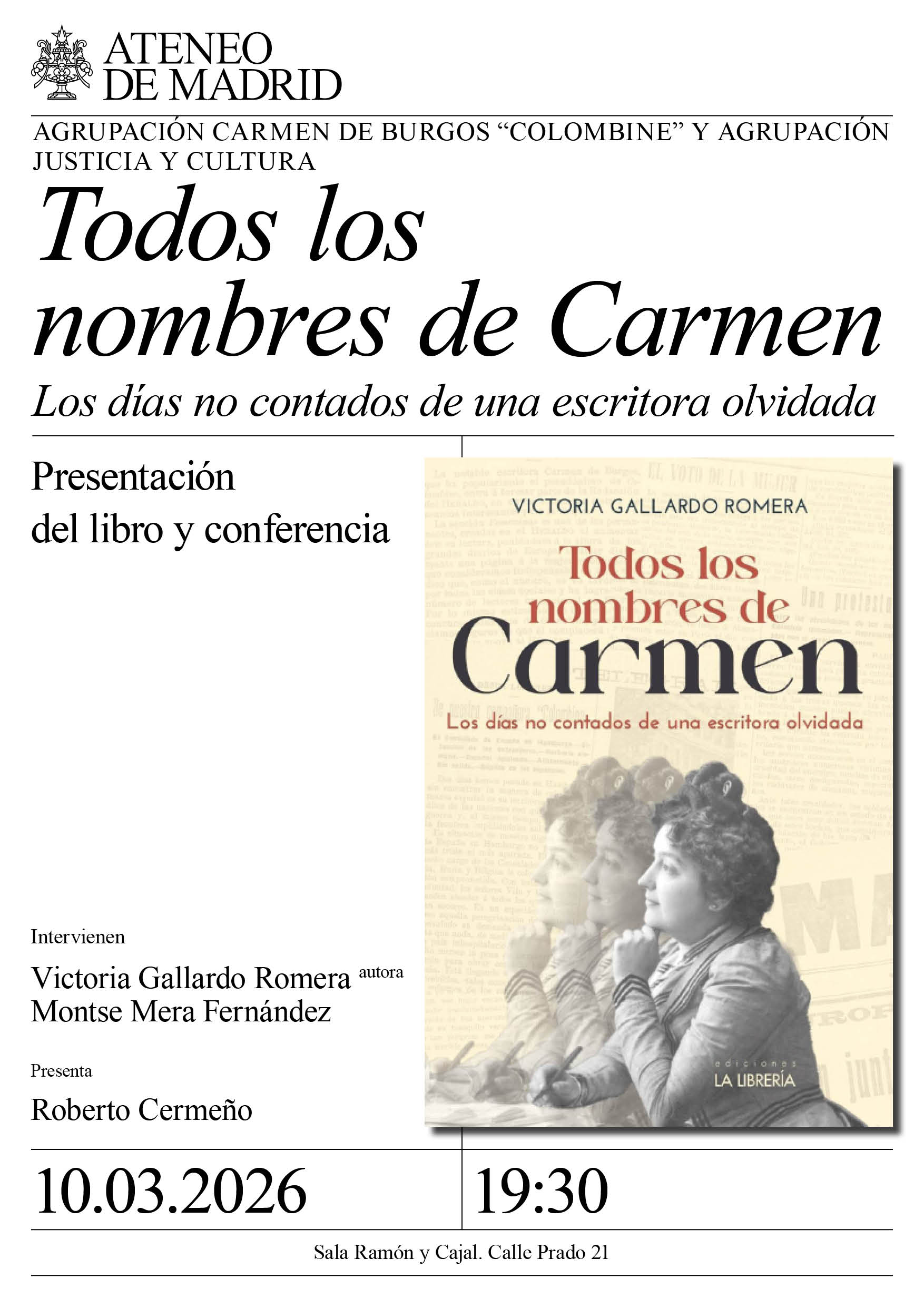 Agrupación Carmen de Burgos “Colombine” y Agrupación Justicia y Cultura. Conferencia Carmen de Burgos: entre el periodismo y el arte de contar el mundo. Intervienen: Victoria Gallardo Romera, periodista y …