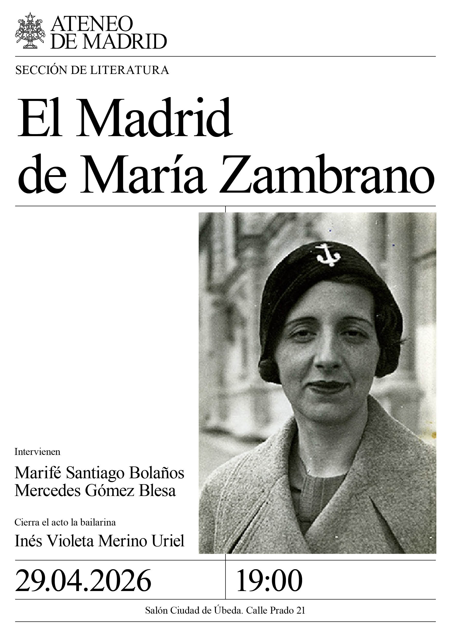 Sección de Literatura. Intervienen: Marifé Santiago Bolaños, profesora de Estética de la Facultad de Filosofía -UCM-, poeta, patrona de la Fundación María Zambrano, académica de la Real Academia de Historia …