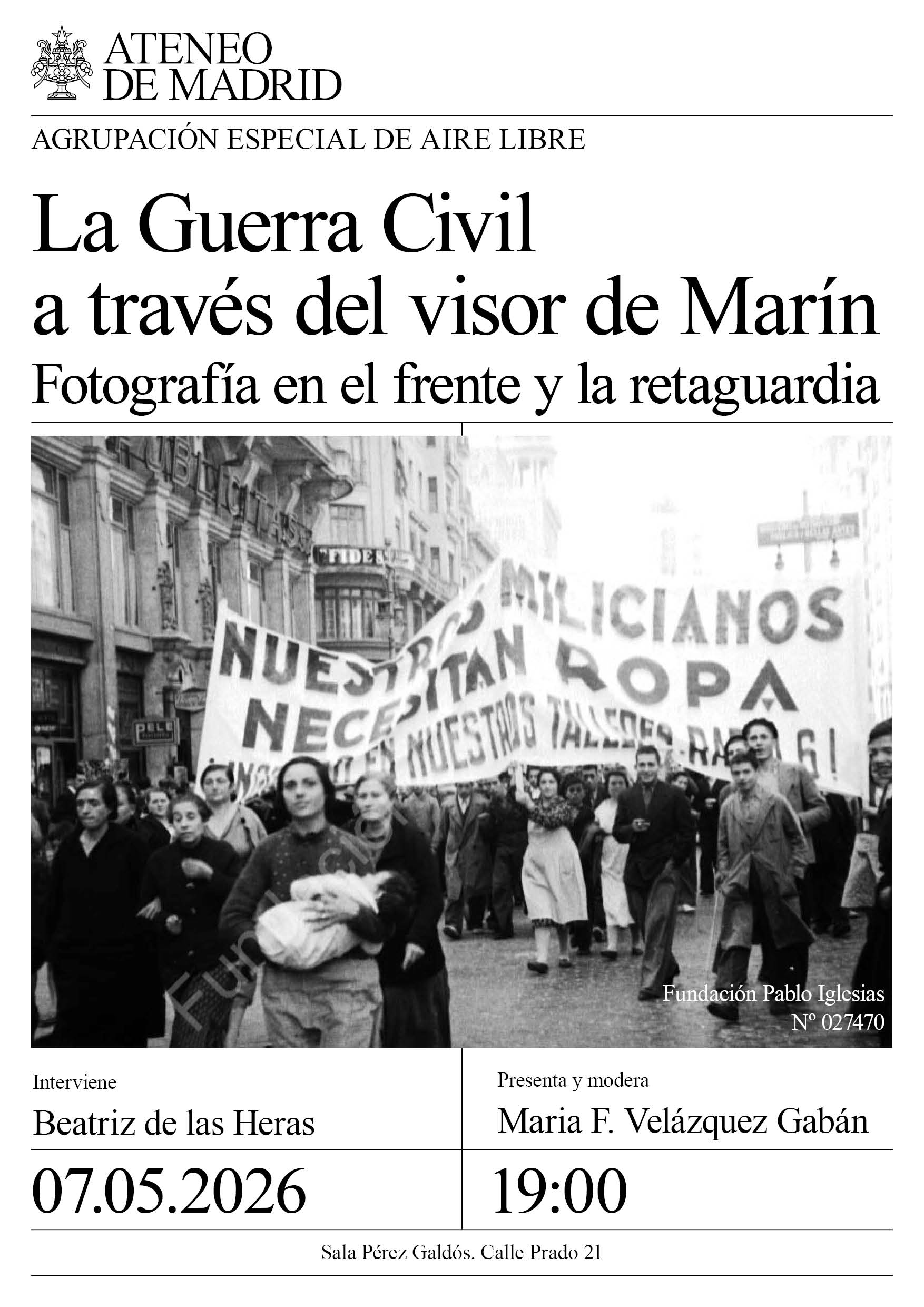Agrupación Especial del Aire Libre. Interviene: Beatriz de las Heras, profesora titular de Historia Contemporánea de la Universidad Carlos Ill de Madrid. Presenta y modera: María F. Velázquez Gabán. Sala …