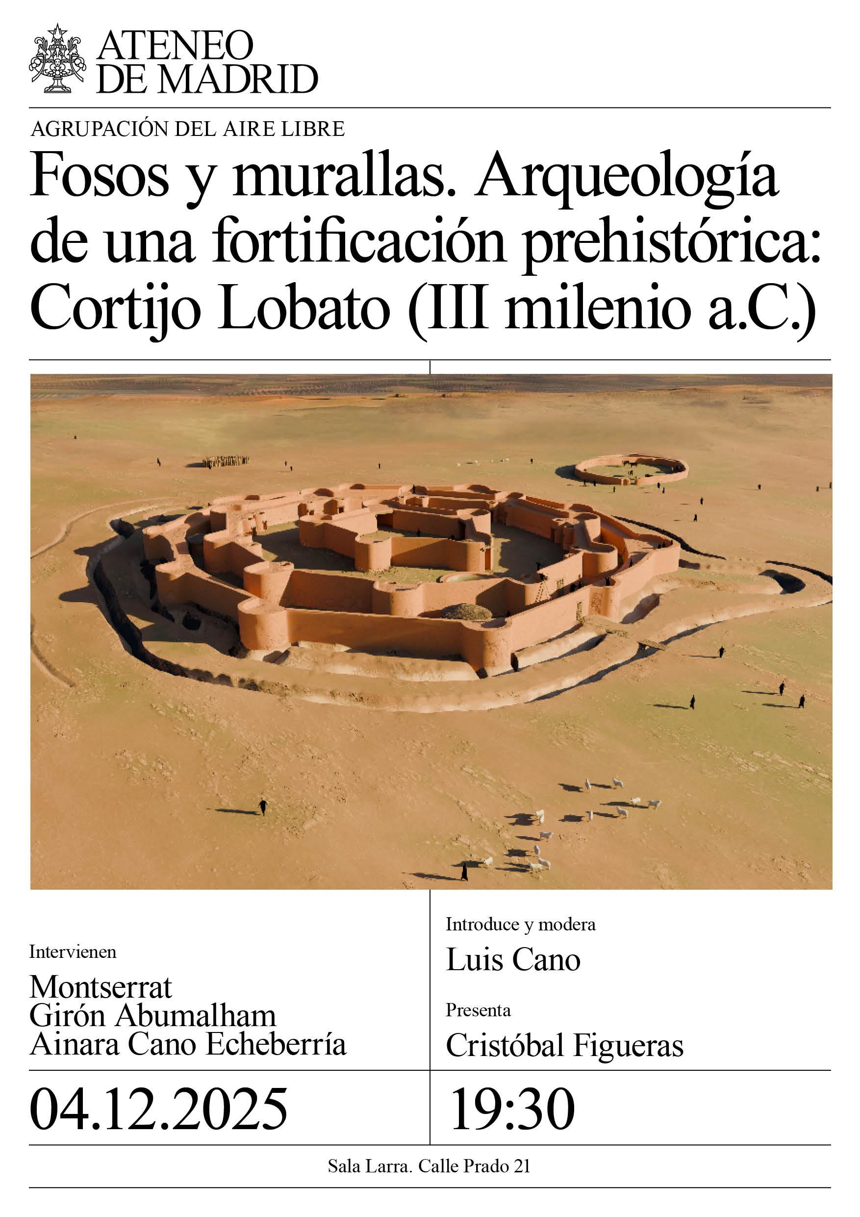 Agrupación del Aire Libre. Intervienen: Montserrat Girón Abumalham, licenciada en Historia, arqueóloga en el equipo de Tera Arqueología; Ainara Cano Echeberría, licenciada en Historia, arqueóloga en el equipo de Tera Arqueología. Presenta: Cristóbal Figueras. Introduce y modera: Luis Cano. Sala Larra. 19:30h.