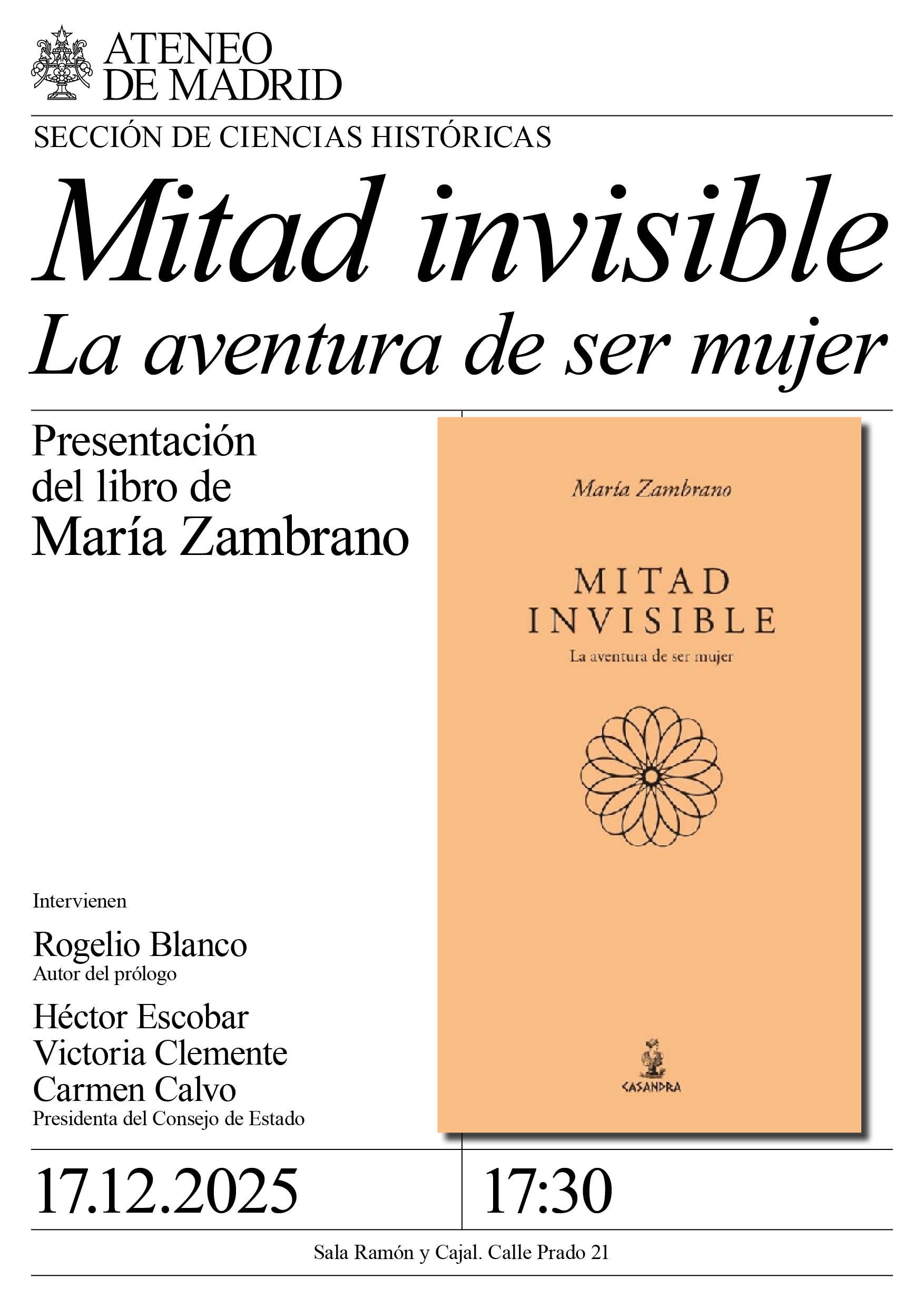 Venta de entradas (aquí). Cátedra Mayor. Solo los socios y socias pueden comprar entradas, para sí y para sus invitados. El Ateneo se reserva el derecho de no admitir la compra de quienes no sean socios, devolviendo el importe de la entradas indebidamente adquiridas.