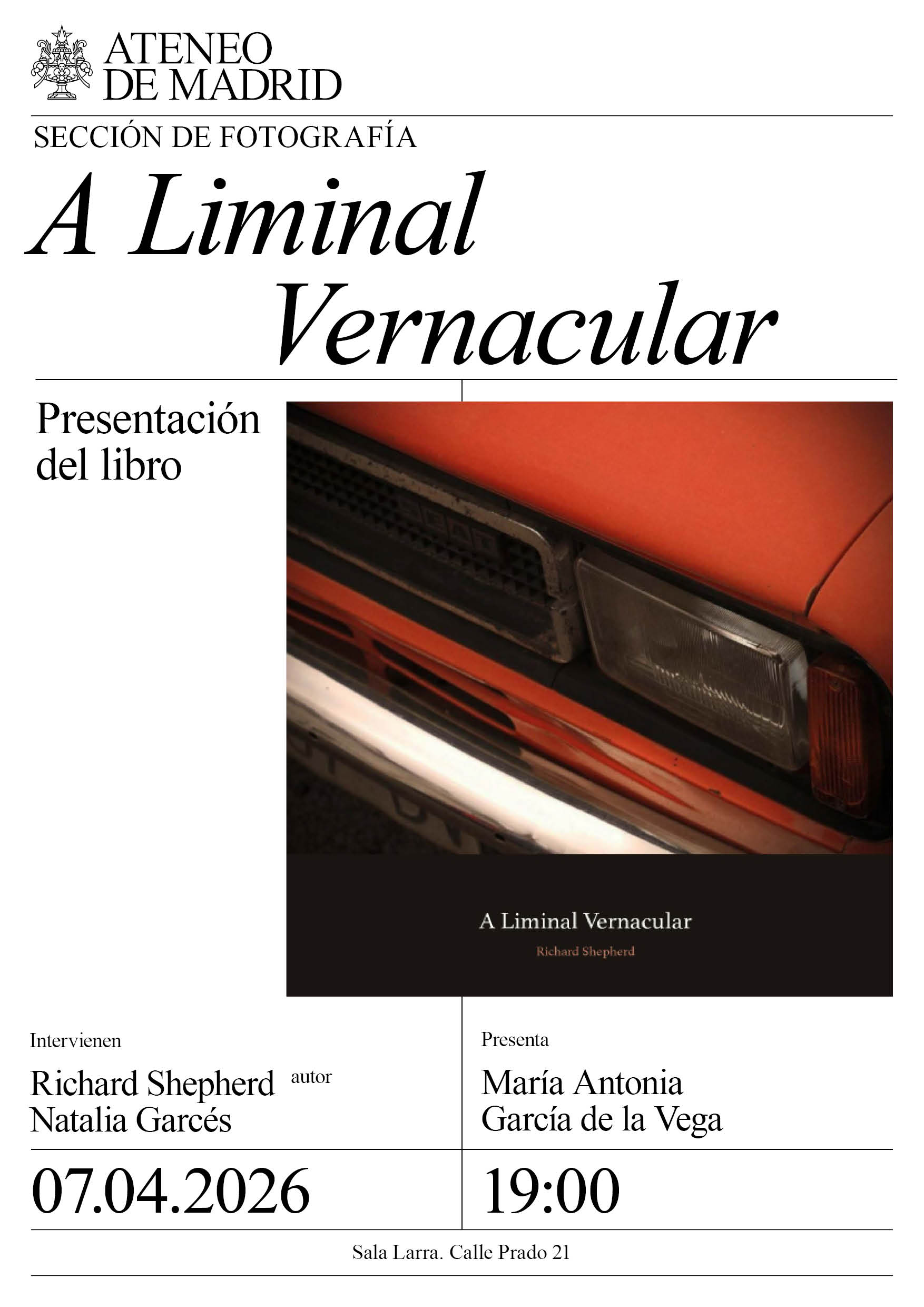 Sección de Fotografía. Intervienen: Richard Shepherd, autor y Natalia Garcés. Presenta: María Antonia García de la Vega. Sala Larra. 19:00h.