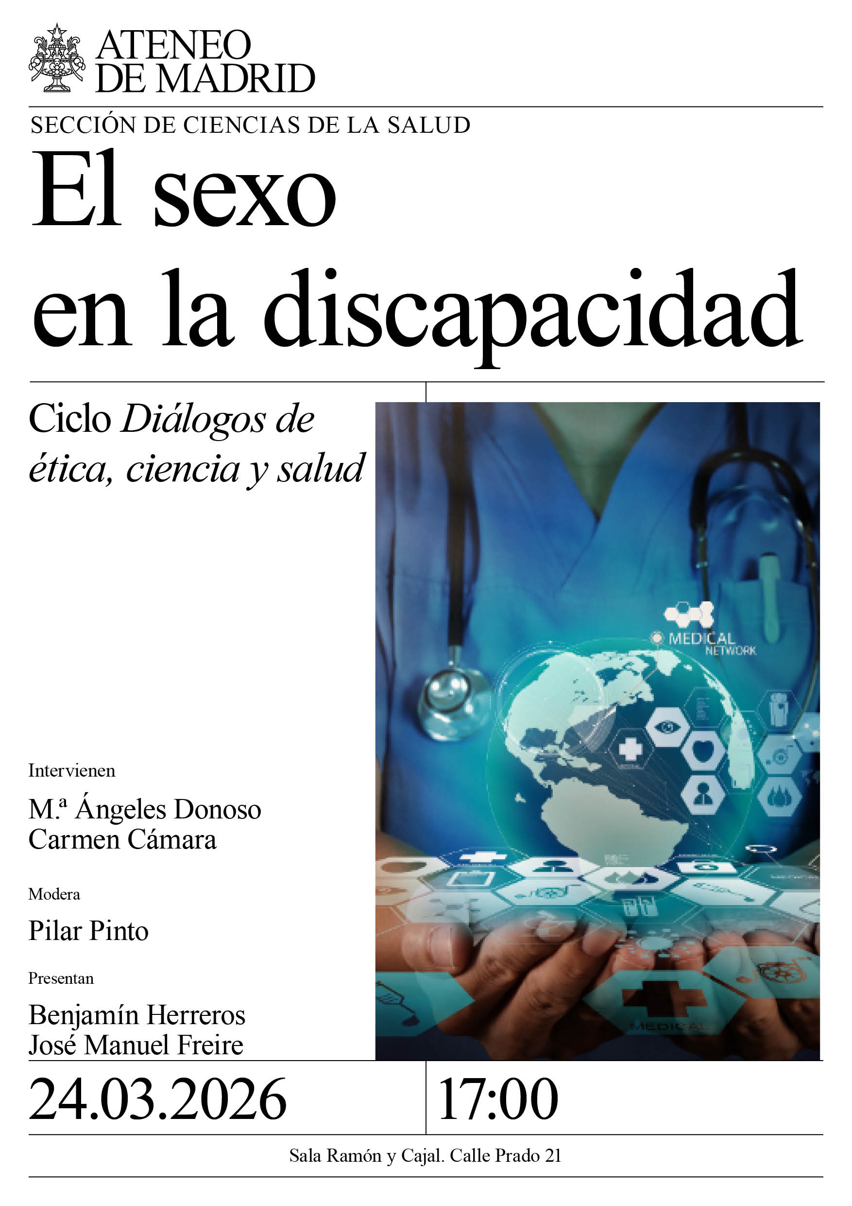Sección de Ciencias de la Salud. Intervienen: M.ª Ángeles Donoso, Hospital Ruber Internacional y Carmen Cámara, Instituto de Ética Clínica Francisco Vallés. Modera: Pilar Pinto, Instituto de Ética Clinica Francisco Vallés. Presentan: Benjamín Herreros y José Manuel Freire. Sala Ramón y Cajal. 17:00h.