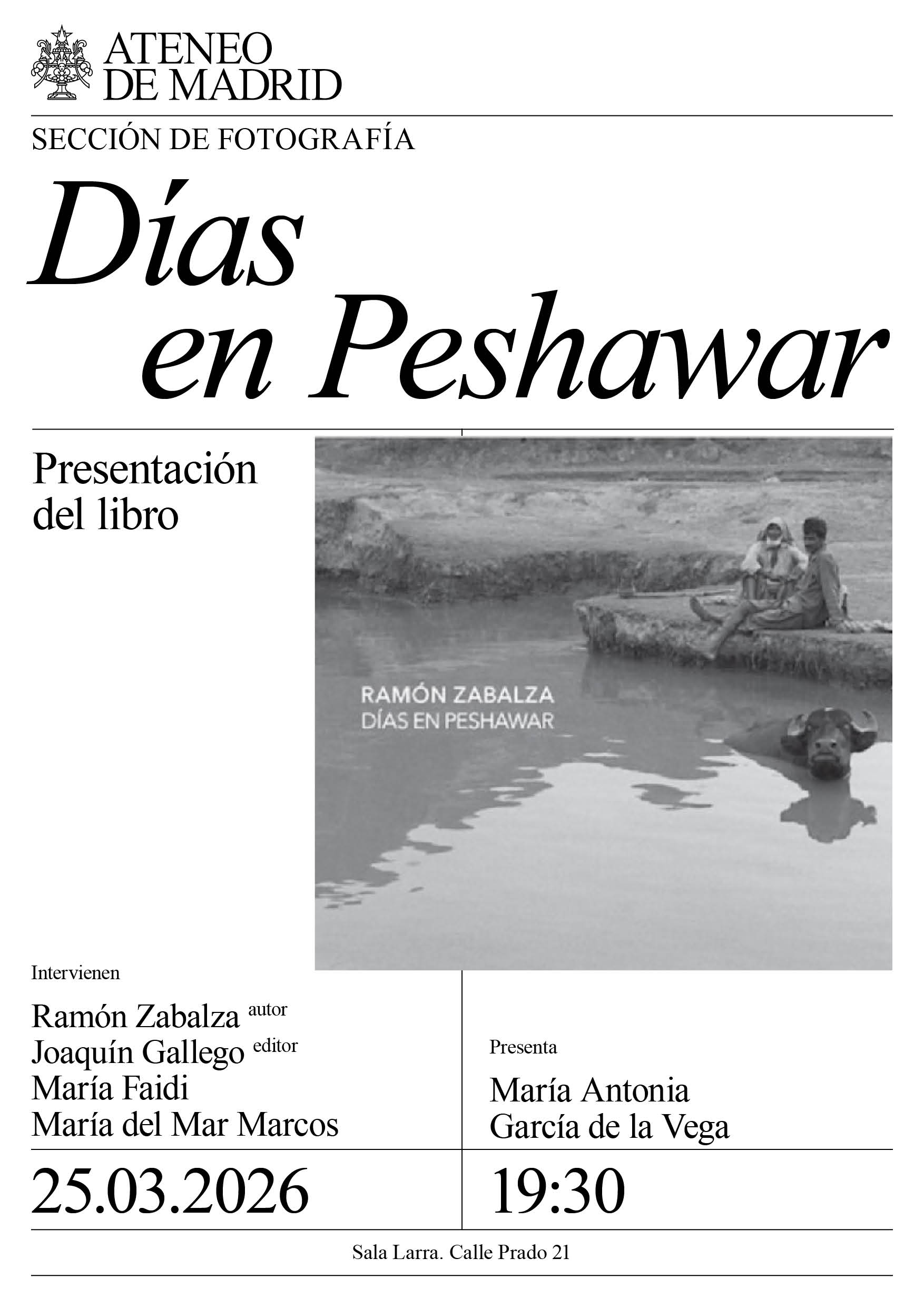Sección de Fotografía. Intervienen: Ramón Zabalza, autor; Joaquín Gallego, editor; María Faidi , doctora en Danza, especializada en cine egipcio; y María del Mar Marcos. Presenta: María Antonia García de la Vega. Sala Larra. 19:30h.