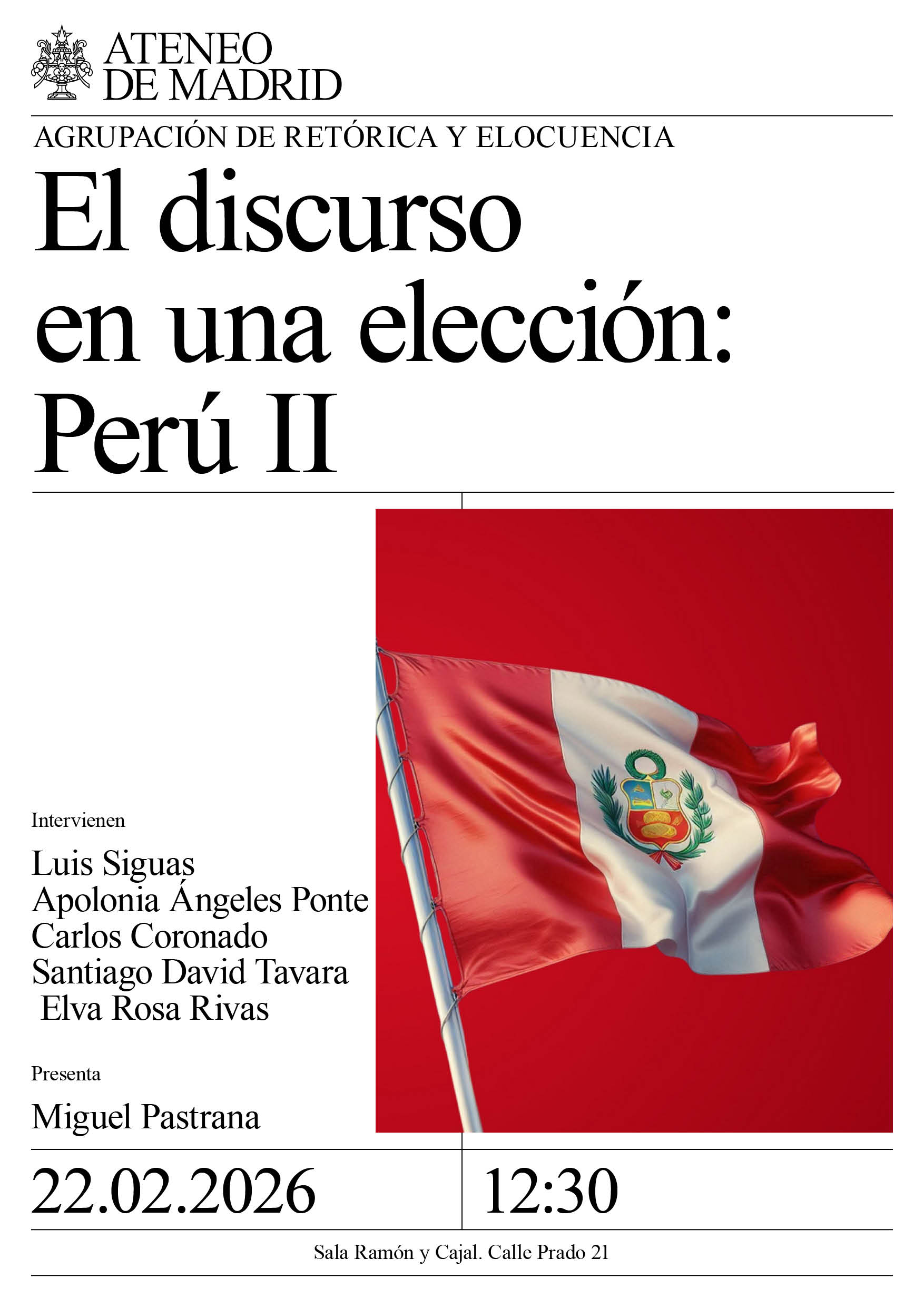 Agrupación de Retórica y Elocuencia. Intervienen: Luis Siguas, técnico superior de la Armada Preuana (r) y secretario del Comité de Ahora Nación; Apolonia Ángeles Ponte, profesora de la Universidad de Estocolomo y candidata a Diputada del Perú; Carlos Coronado, profesor de Educación Secundaria, exconcejal de Villanueva del Pardillo (Madrid) y candidato a senador del Perú; …