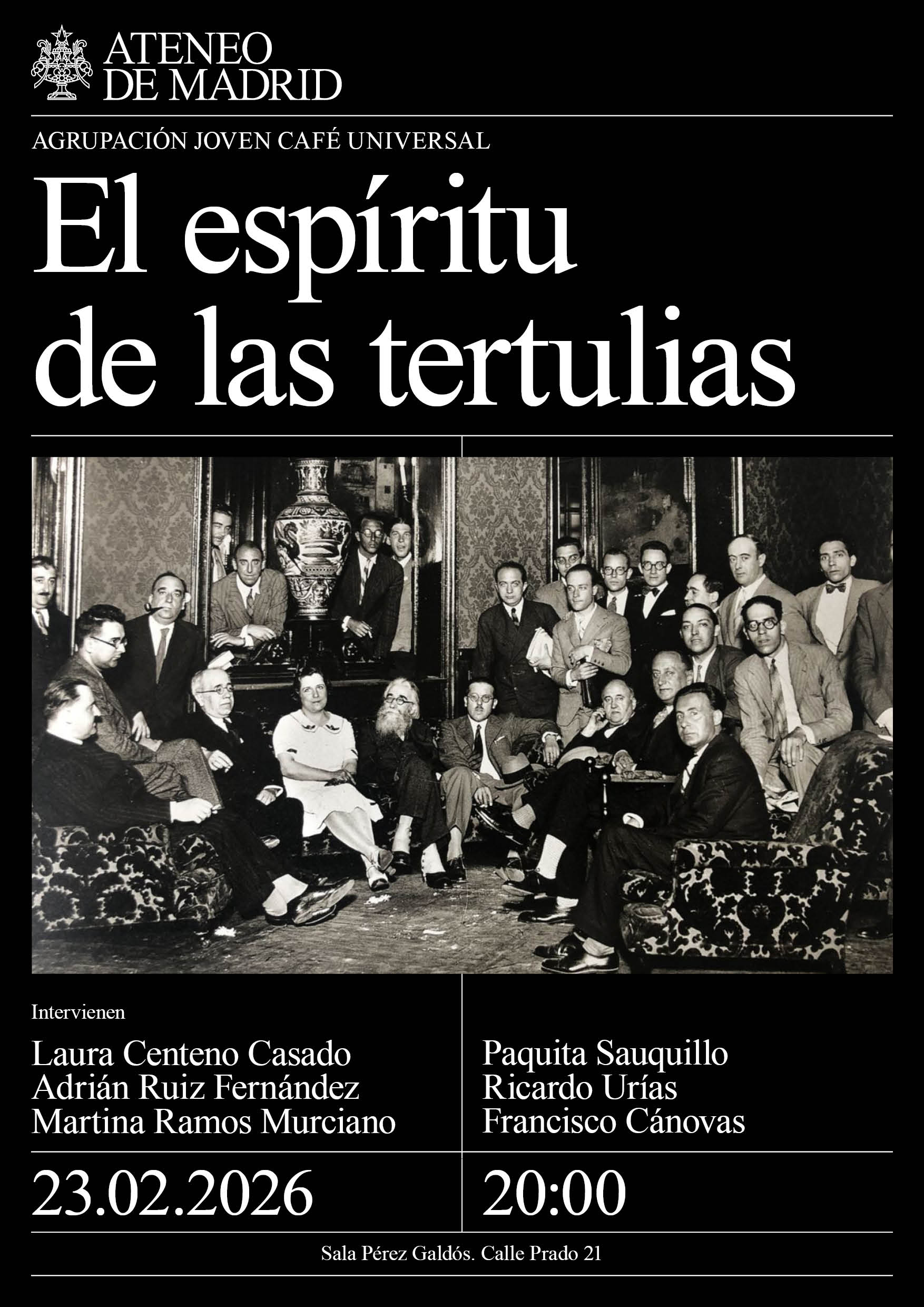 Agrupación Joven Café Universal. Intervienen: Laura Centeno Casado, Adrián Ruiz Fernández, Martina Ramos Murciano, Paquita Sauquillo, Ricardo Urías y Francisco Cánovas. Sala Pérez Galdós. 20:00h.