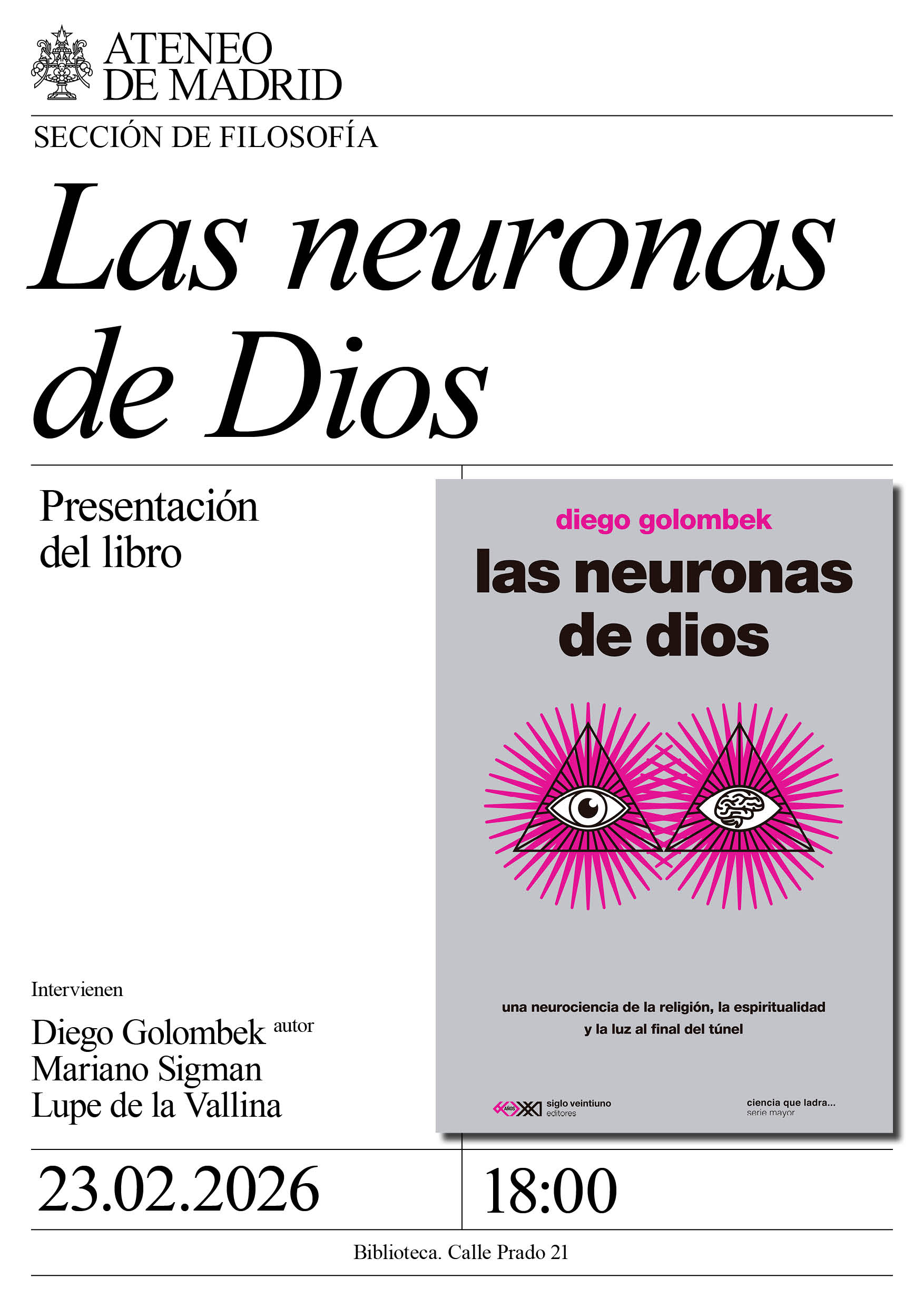 Sección de Filosofía. Intervienen: Diego Golombek, autor, doctorado en Ciencias Biológicas; Mariano Sigman, científico, doctorado en neurociencia; y Lupe de la Vallina, fotógrafa. Biblioteca. 18:00h.