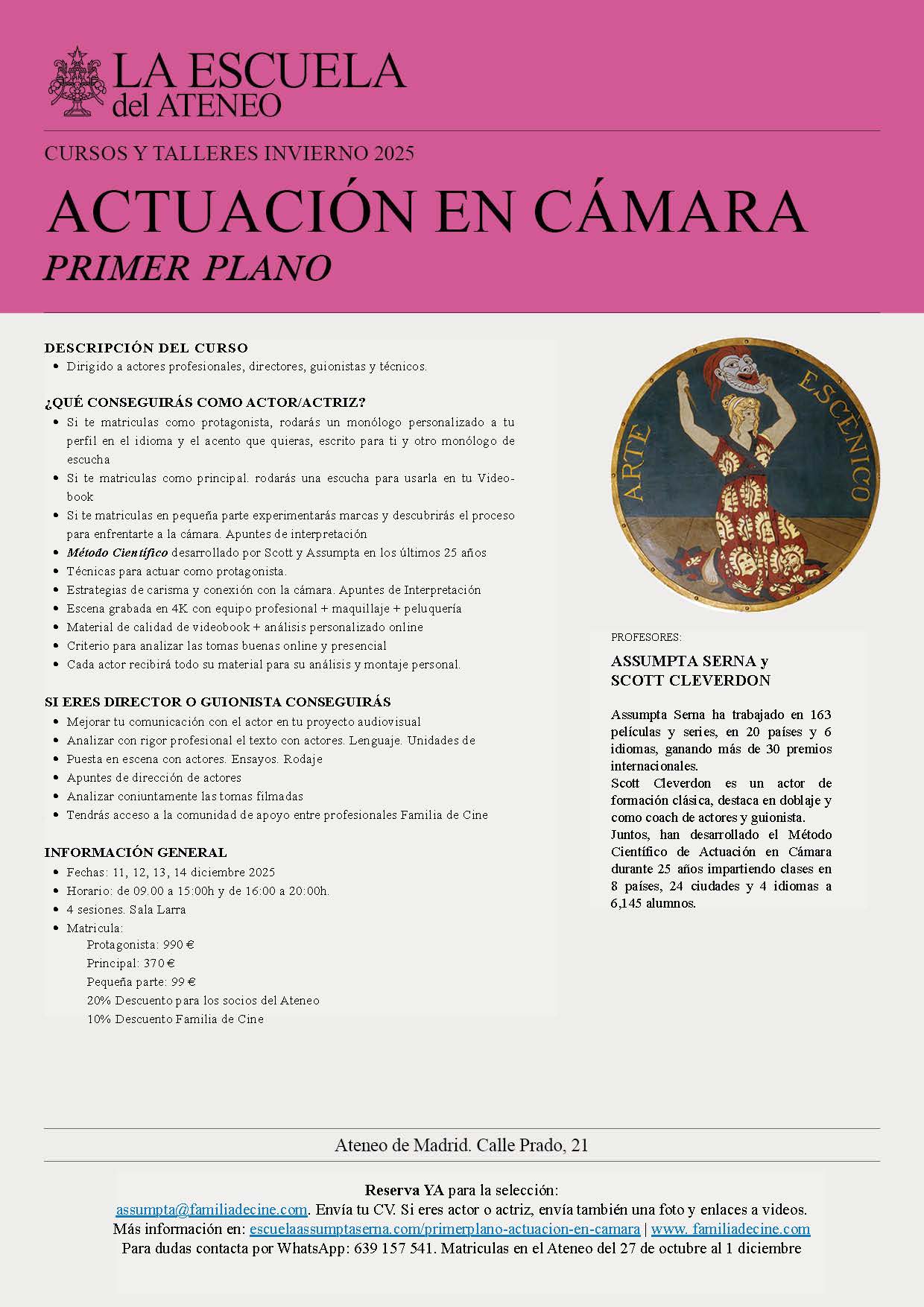escuelaassumptaserna.com/primerplano-actuacion-en-camara | www. familiadecine.com.