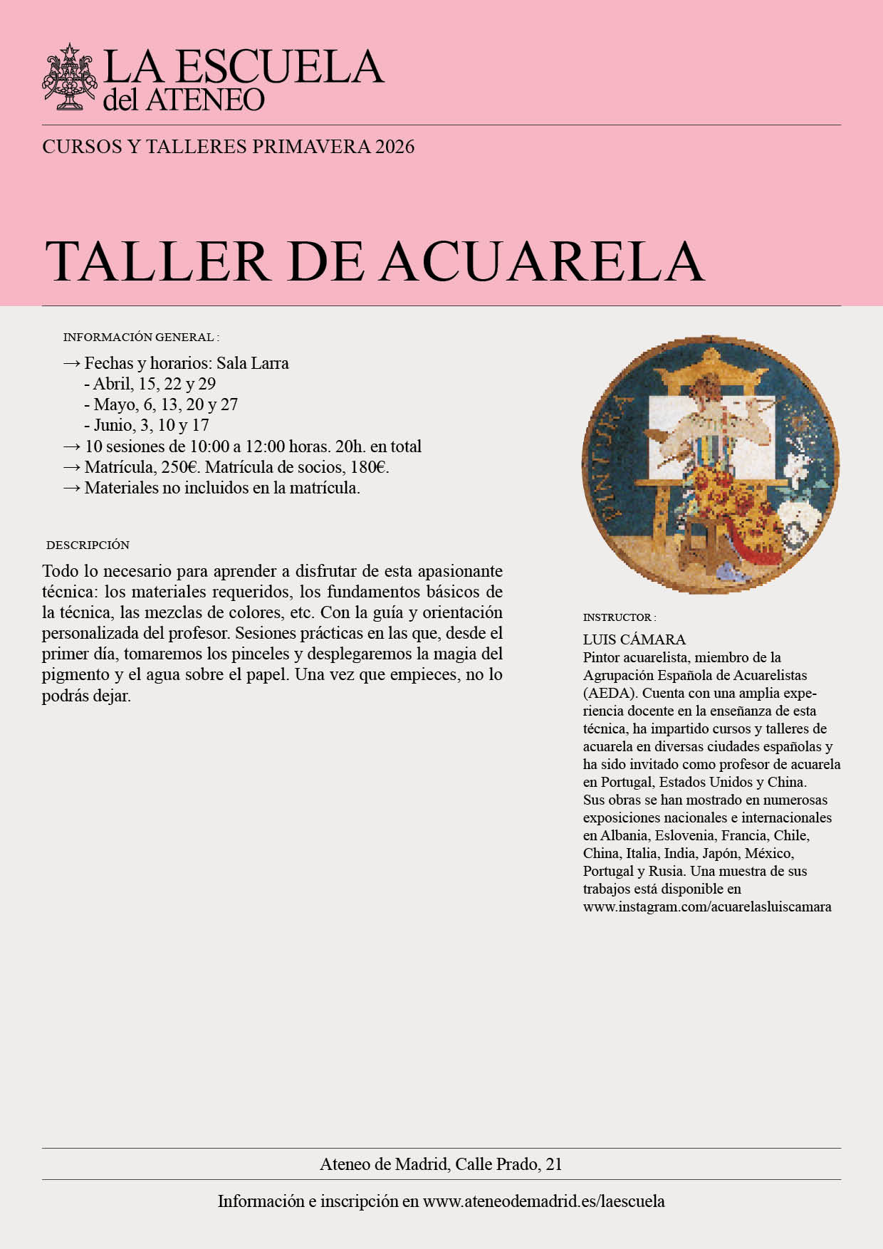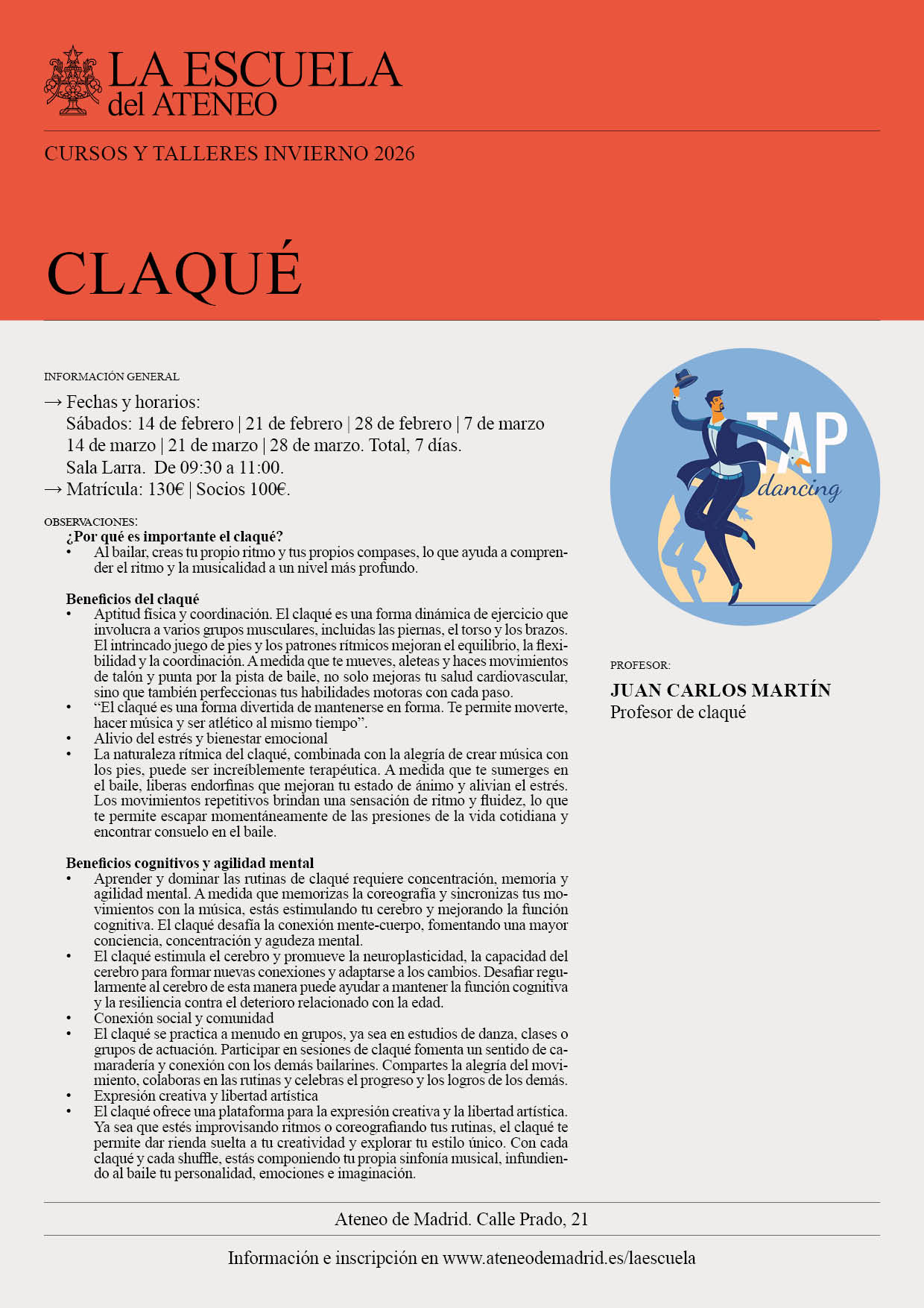 Inscripciones en: escuela@ateneodemadrid.es